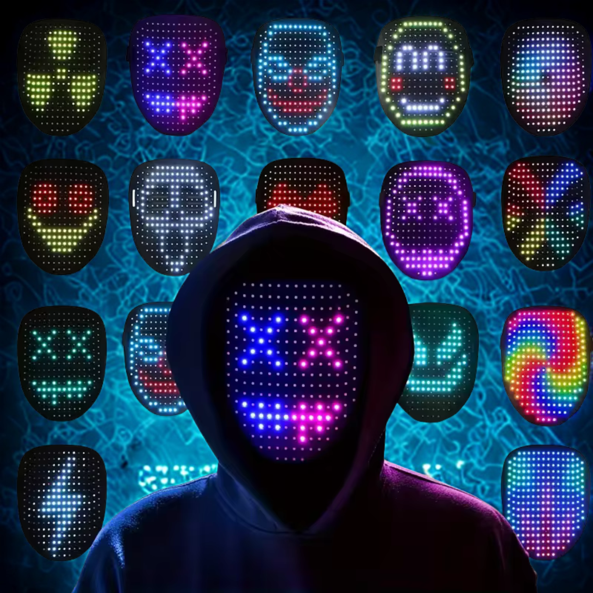Einfach aufsetzen, App verbinden und loslegen. Gesichter & Muster, App-Steuerung, bewegungsgesteuerter Gesichtwechsel und bis zu 12 Stunden Akku. Unheimlich stylisch, kinderleicht zu bedienen und perfekt für Halloween, Partys oder jede Nacht, in der du auffallen willst.